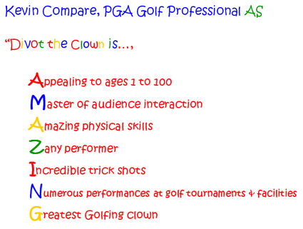 - The WORLD’S GREATEST GOLFING CLOWN and TRICK SHOT EXHIBITION